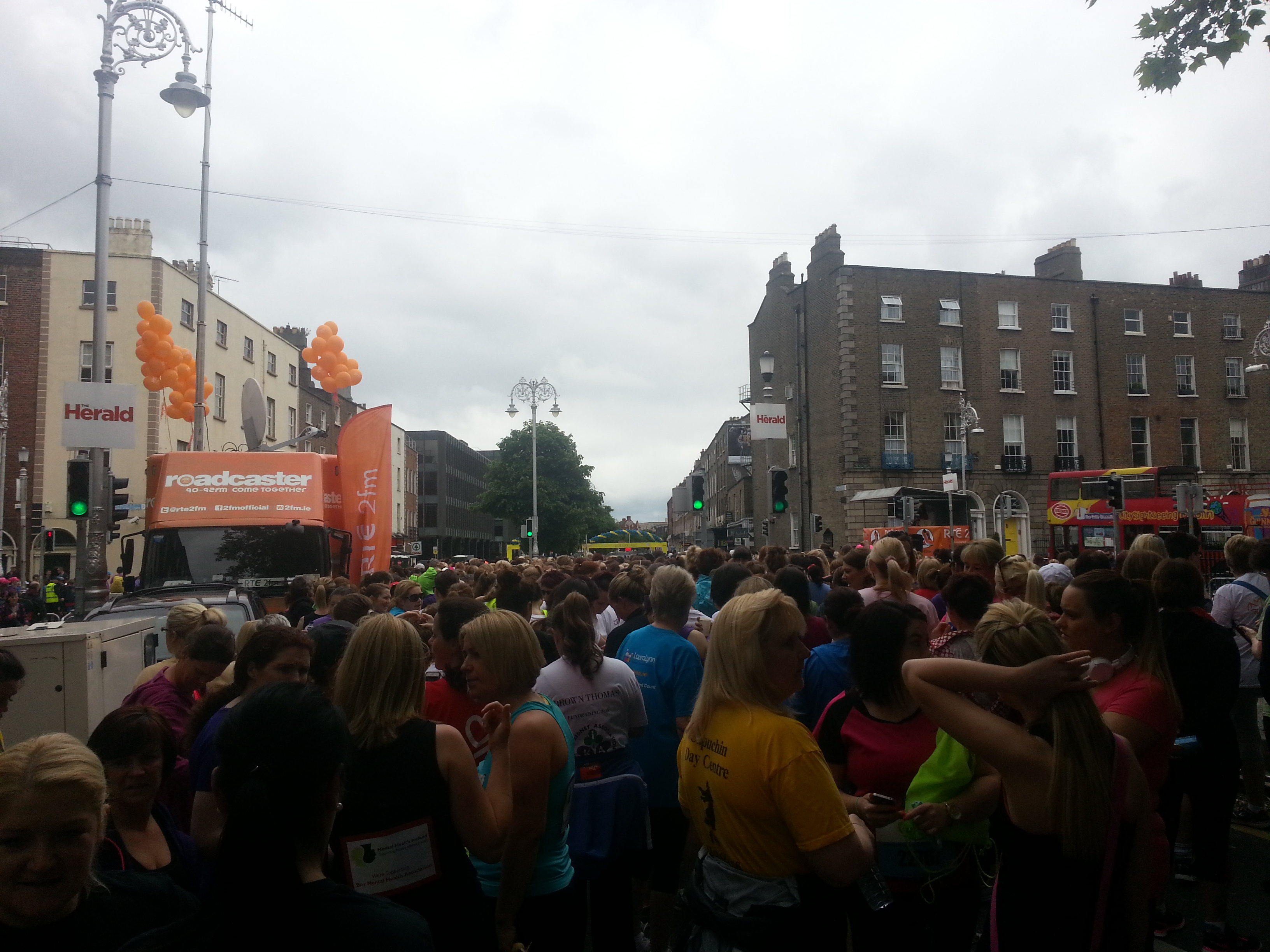 Crazy crazy crowds! There was no such thing as personal space at the start line. That was one of the toughest things for me; I don’t like being touched at the best of times so the press of people was hard to take. But, I had been prepared and knew what to expect so I was able to grin and bear it. But when it was time to head for the start it was a relief!
